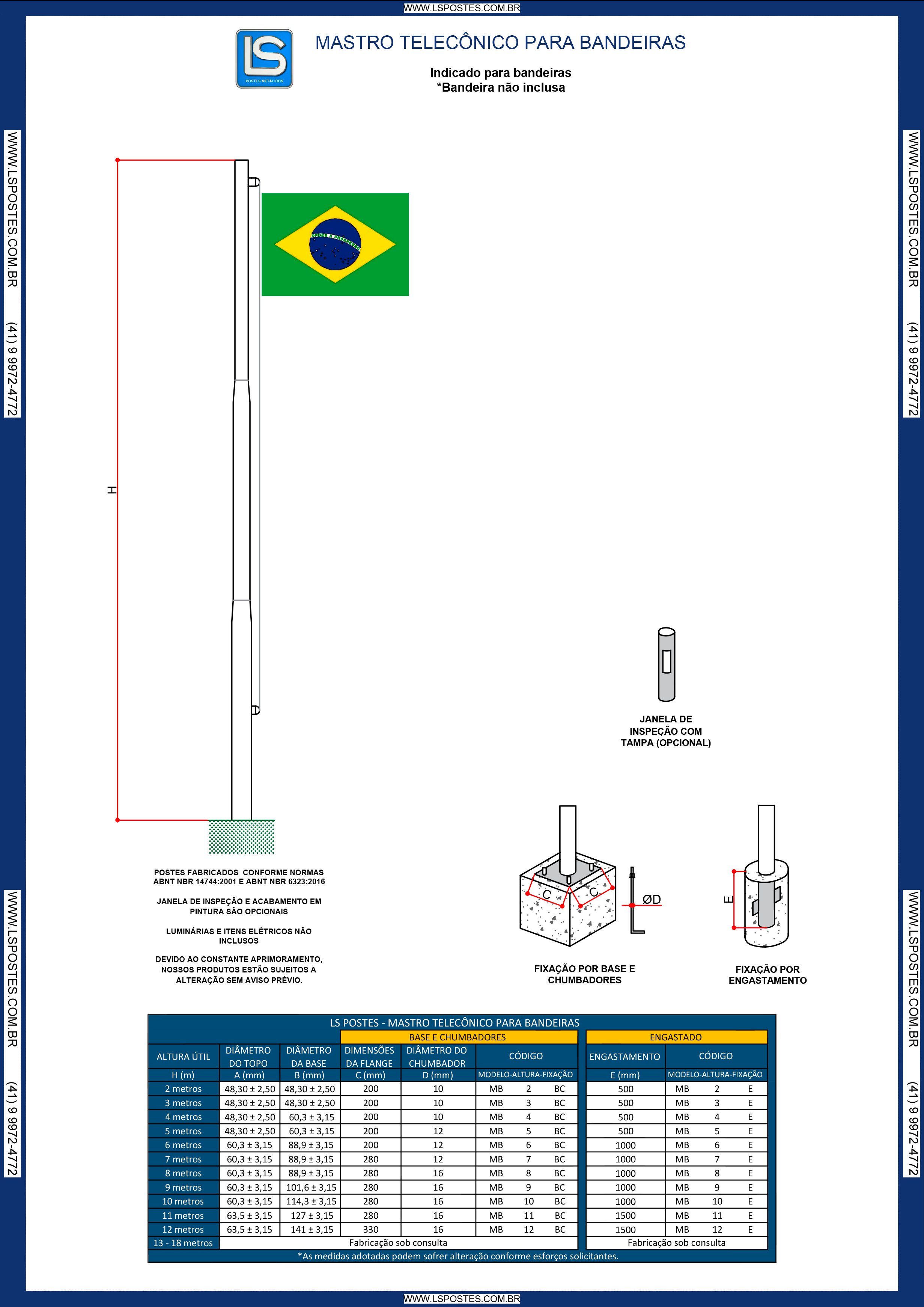 MASTRO TELECÔNICO RETO - PARA BANDEIRASCom roldanas e cabo de aço Bandeira não inclusa Fale Conosco Fale Conosco ProdutosSUPORTES TIPO PÉTALA POSTE TELECÔNICO RETO – PARA LUMINÁRIAS PÚBLICAS POSTE TELECÔNICO RETO MODELO MARIPOSA POSTE TELECÔNICO RETO – PARA CRUZETAS POSTE TELECÔNICO CURVO SIMPLES POSTE TELECÔNICO CURVO DUPLO MASTRO TELECÔNICO RETO – PARA BANDEIRAS BRAÇO TIPO 4 BRAÇO TIPO 3 BRAÇO TIPO 2 BRAÇO TIPO 1